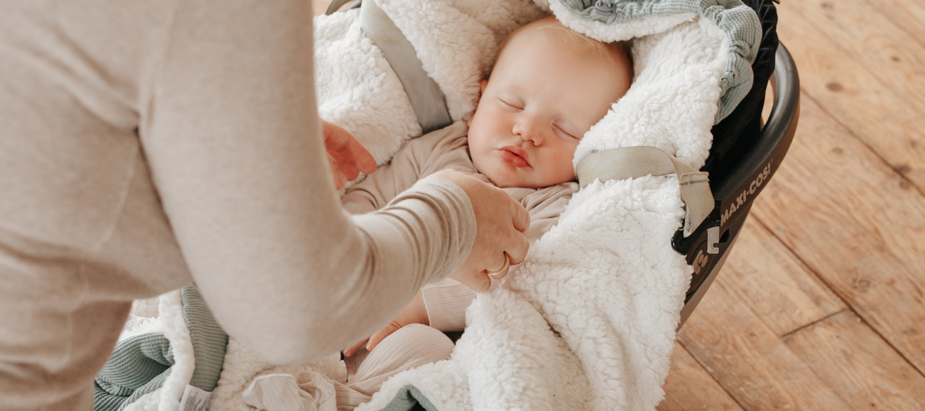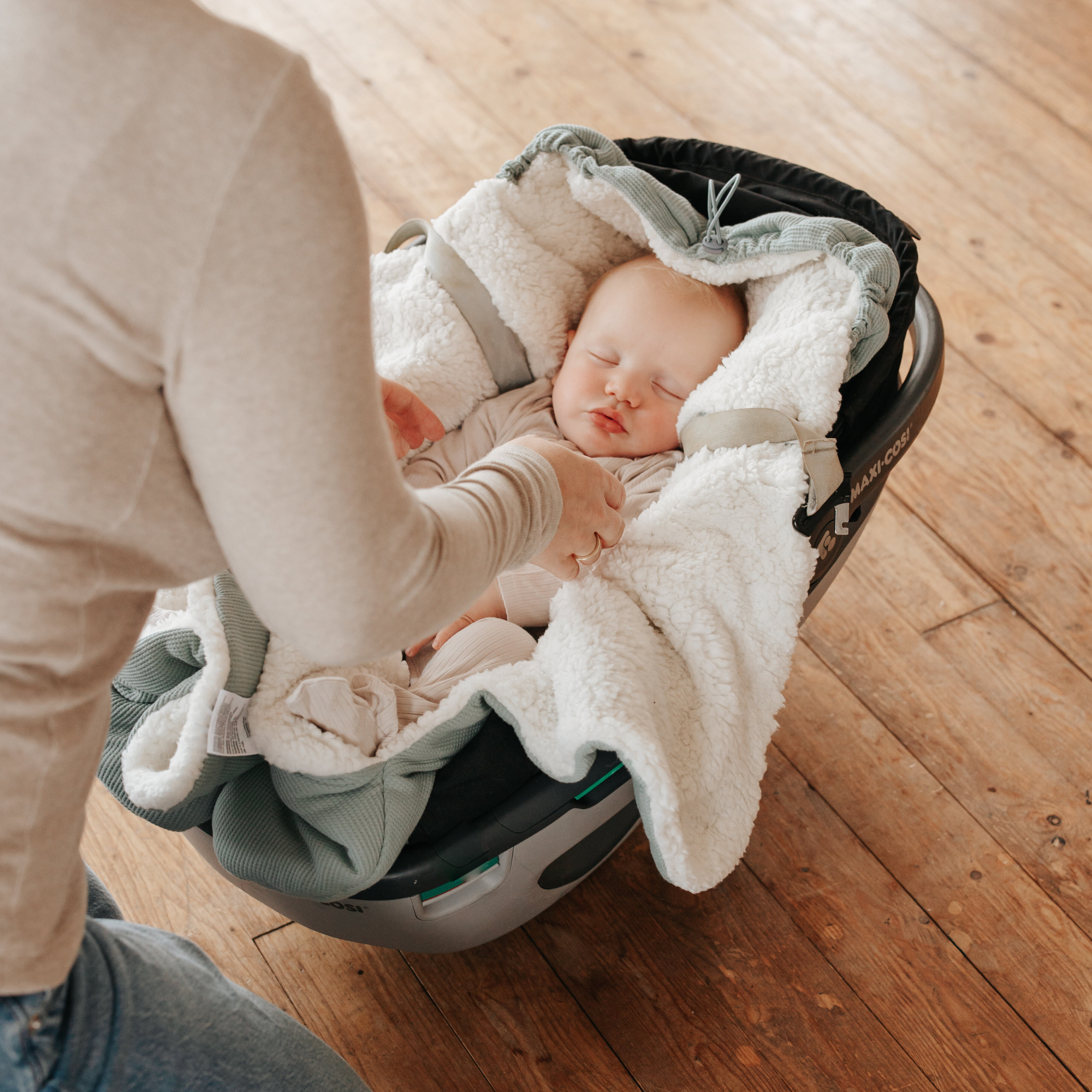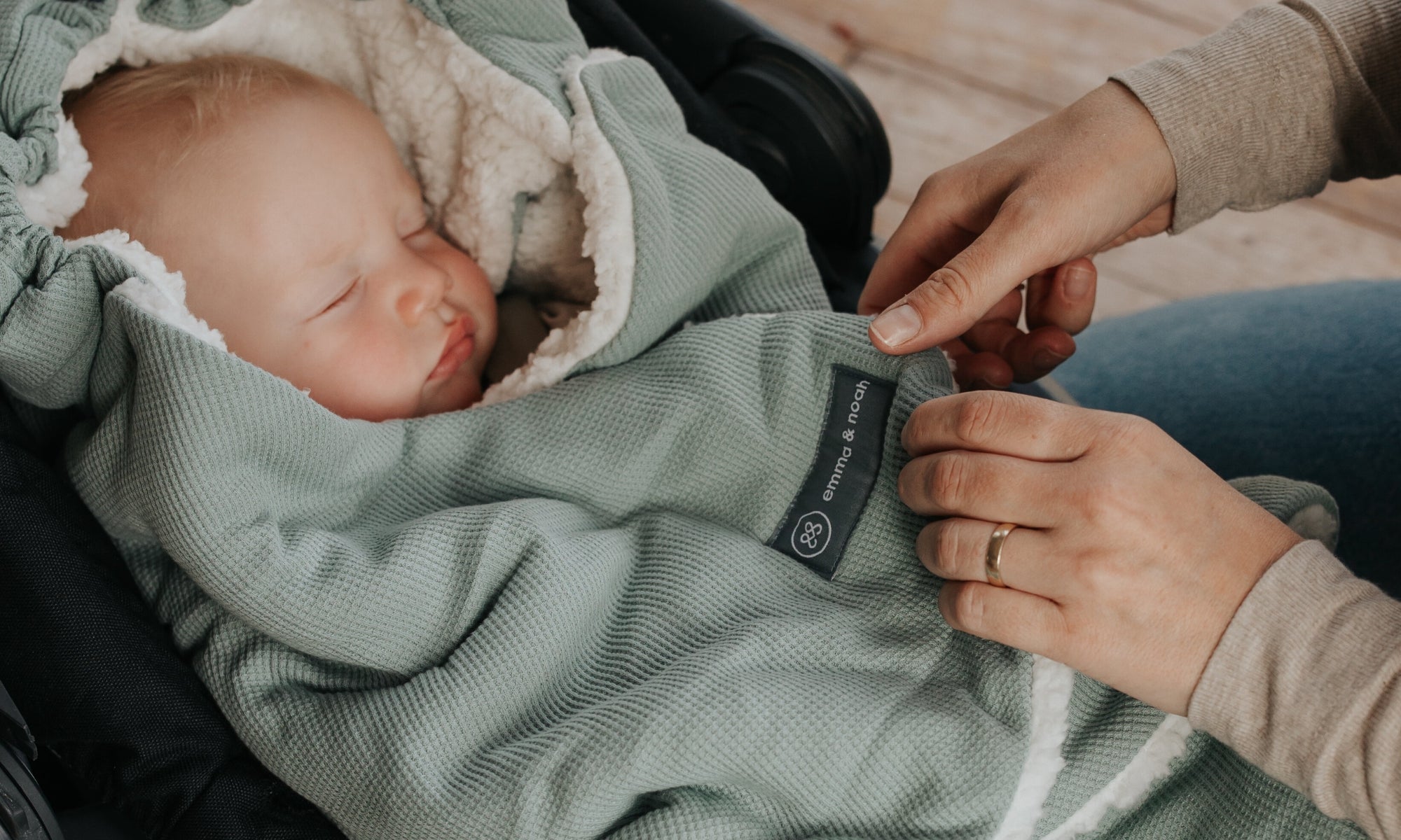 Ob kalte Brise oder heiße Sonnenstrahlen – mit der richtigen Einschlagdecke für die Babyschale ist Dein Baby immer bestens geschützt: