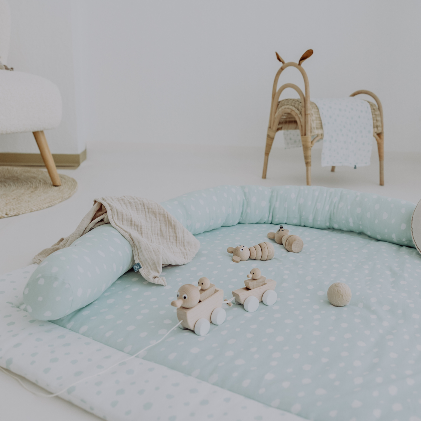 Krabbeldecken sind vielseitig einsetzbar. Sie eignen sich ideal zum Rollen und Krabbeln lernen, aber auch auch zum Spielen. So haben auch größere Kinder eine Freude daran!