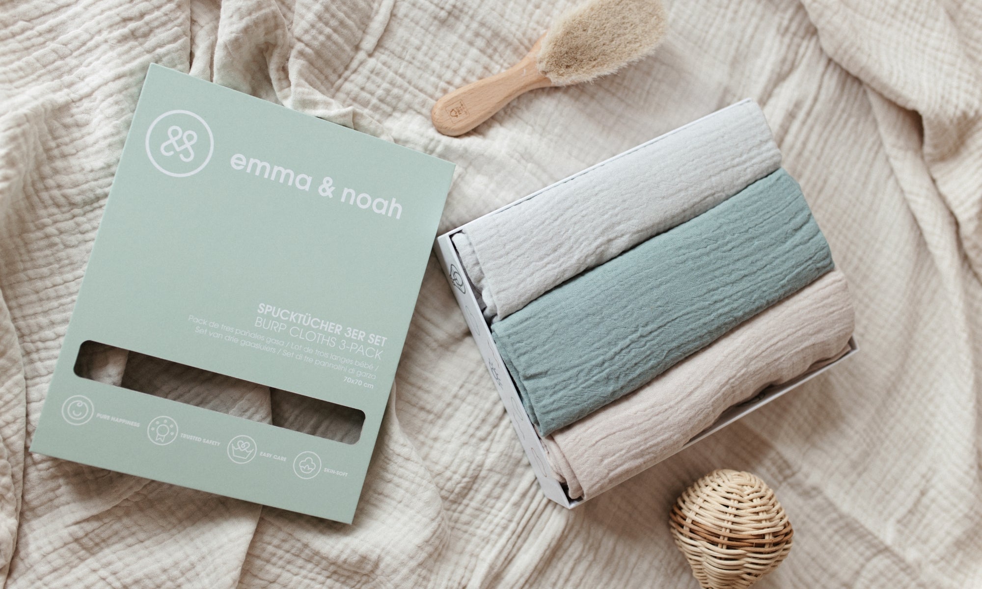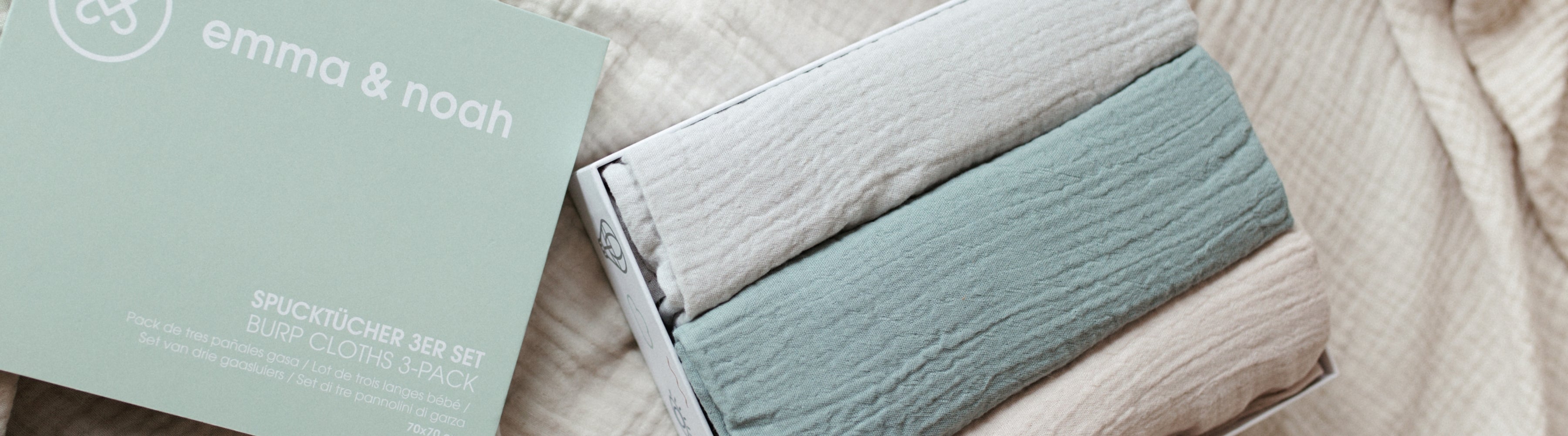Die emma & noah Spucktücher verbinden das Beste aus allem: Sie sind kompakt und saugfähig, gleichzeitig aber so weich, vielseitig und hochwertig verarbeitet, dass Du sie auch problemlos als Mulltuch oder leichte Mullwindel nutzen kannst. Ein echtes Multitalent für den Babyalltag!