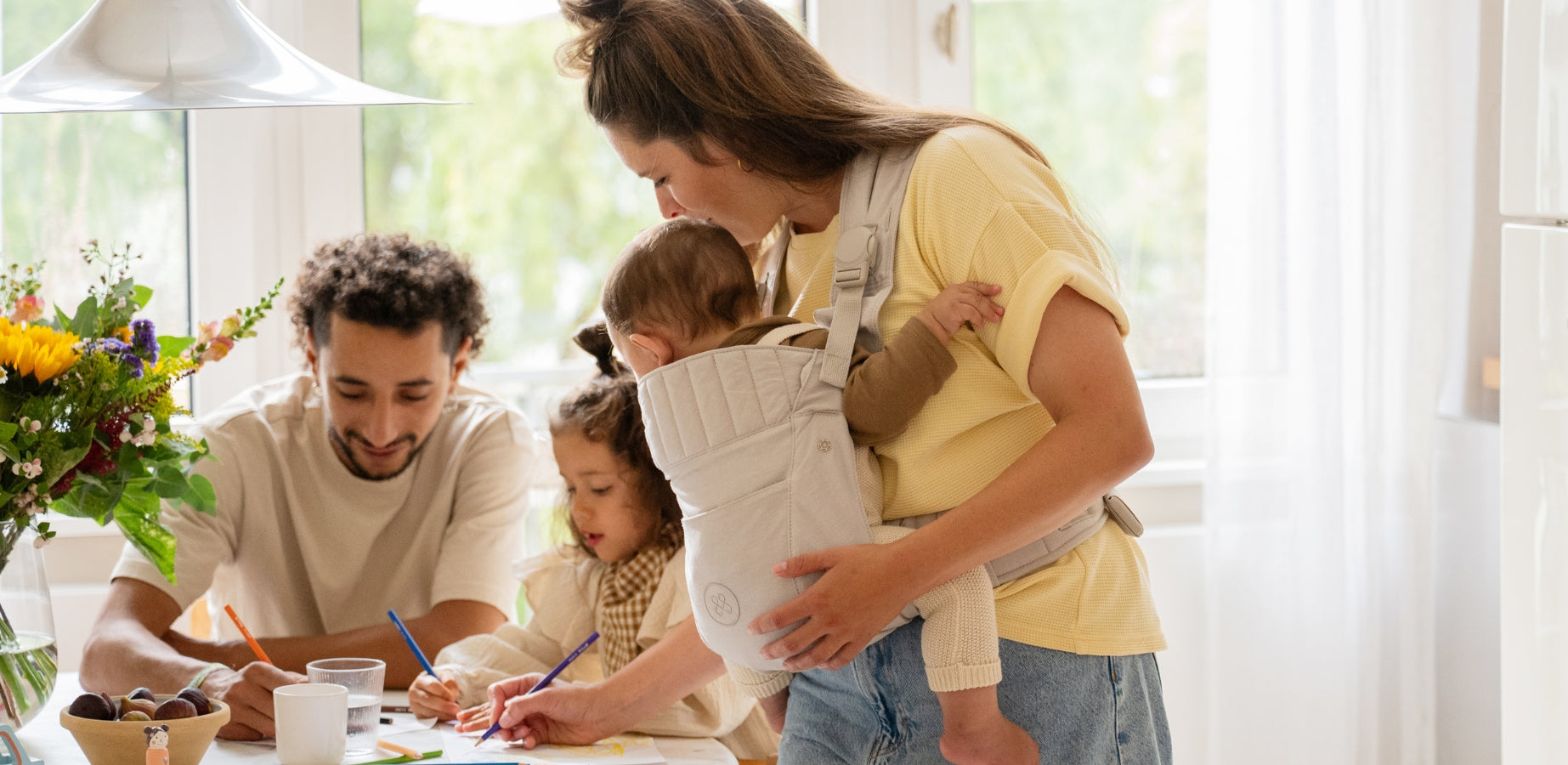 Als Trageberaterin empfehle ich die emma & noah Babytrage: Sie ist im Handumdrehen angelegt und perfekt für die Einschlafbegleitung.