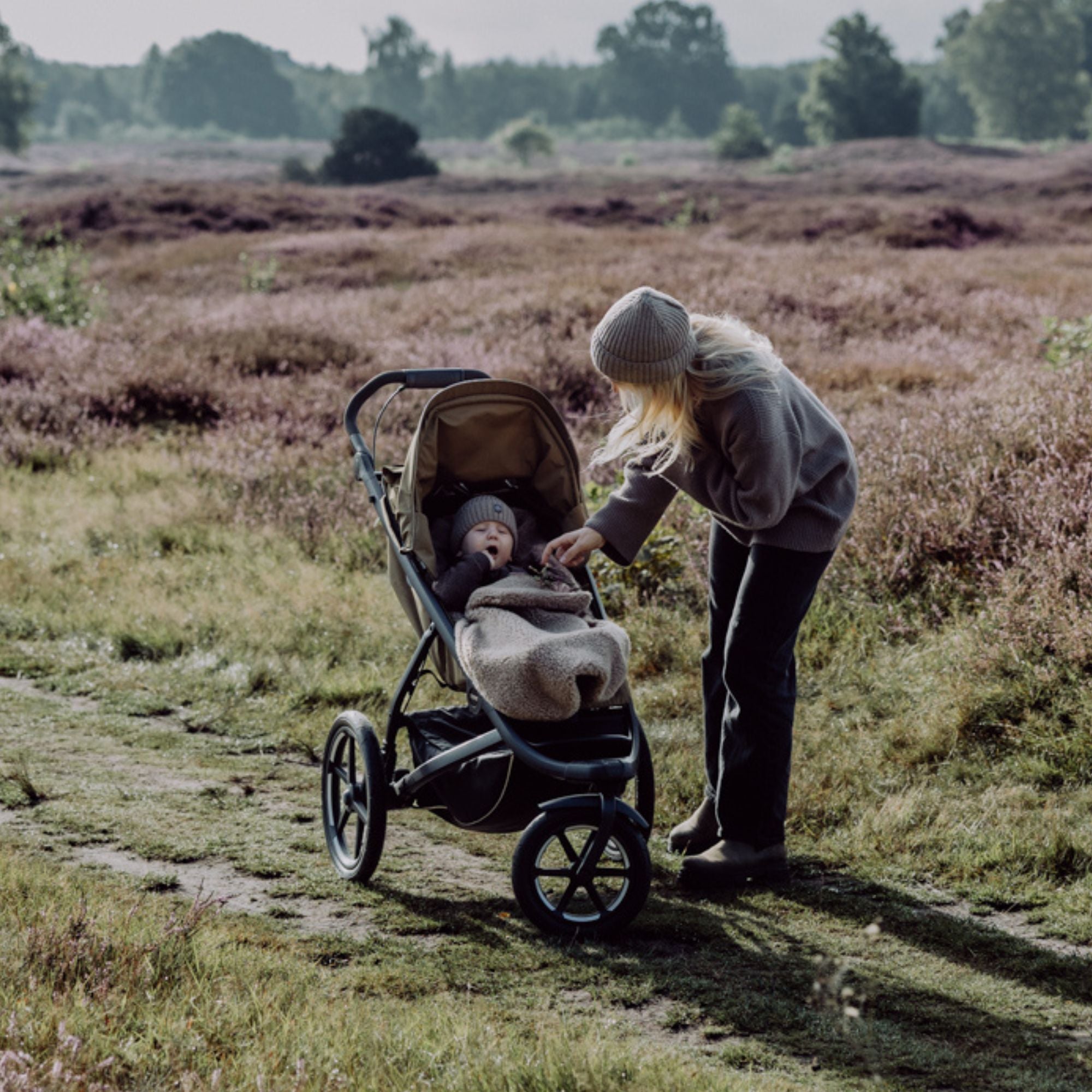 Auch im Buggy ist der Fußsack ein treuer Begleiter. Durch die praktische Passform und die Gurtschlitze sitzt er sicher, ohne zu verrutschen. So kannst Du Deinen kleinen Schatz jederzeit bequem und warm mitnehmen, egal ob in die Stadt oder auf einen Ausflug ins Grüne.