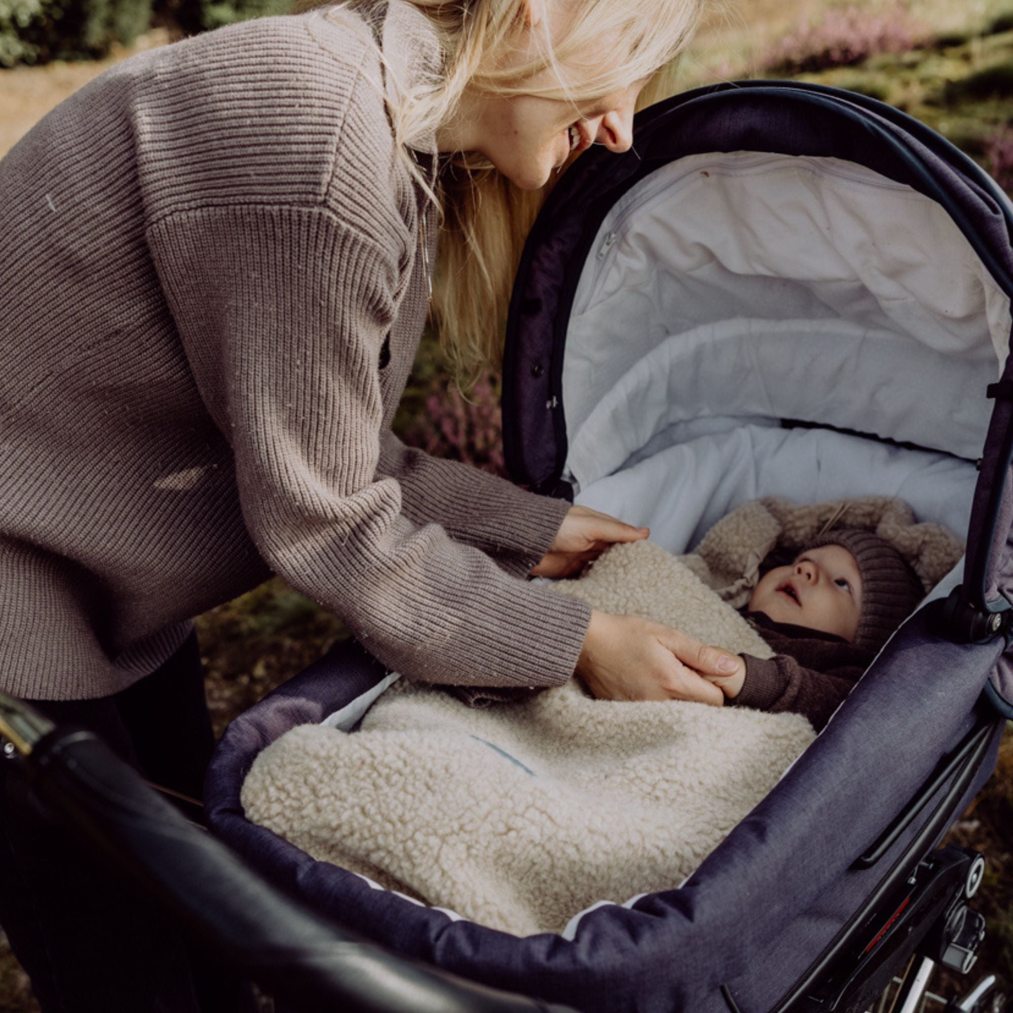 Im Kinderwagen sorgt der Fußsack für kuschelige Geborgenheit bei jedem Spaziergang. Selbst an kalten Tagen bleibt Dein Baby dank der atmungsaktiven Merinowolle angenehm temperiert – ohne zu schwitzen oder zu frieren.