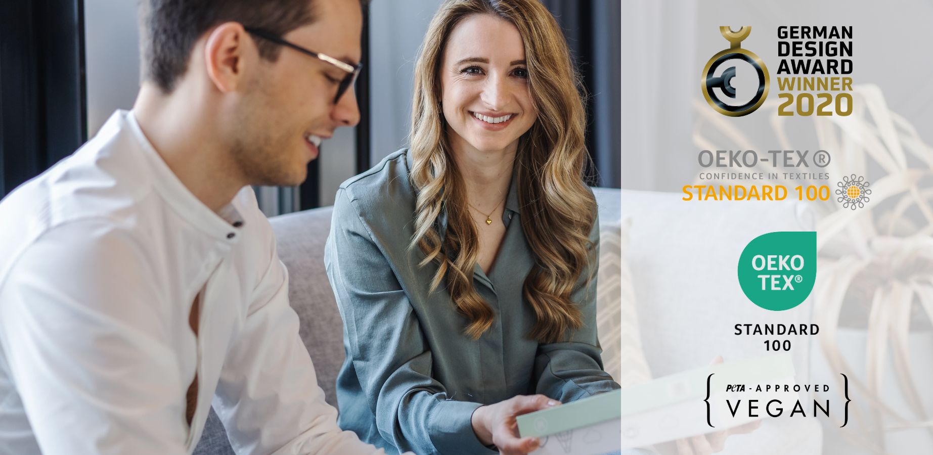 Unsere zeitlosen emma & noah Designs stehen neben der hohen Qualität unserer Materialien an oberster Stelle. Unsere unverwechselbaren und liebevoll designten Muster werden Dich jeden Tag aufs Neue erfreuen. Auch aus diesem Grund wurden wir mit dem German Design Award 2020 ausgezeichnet.