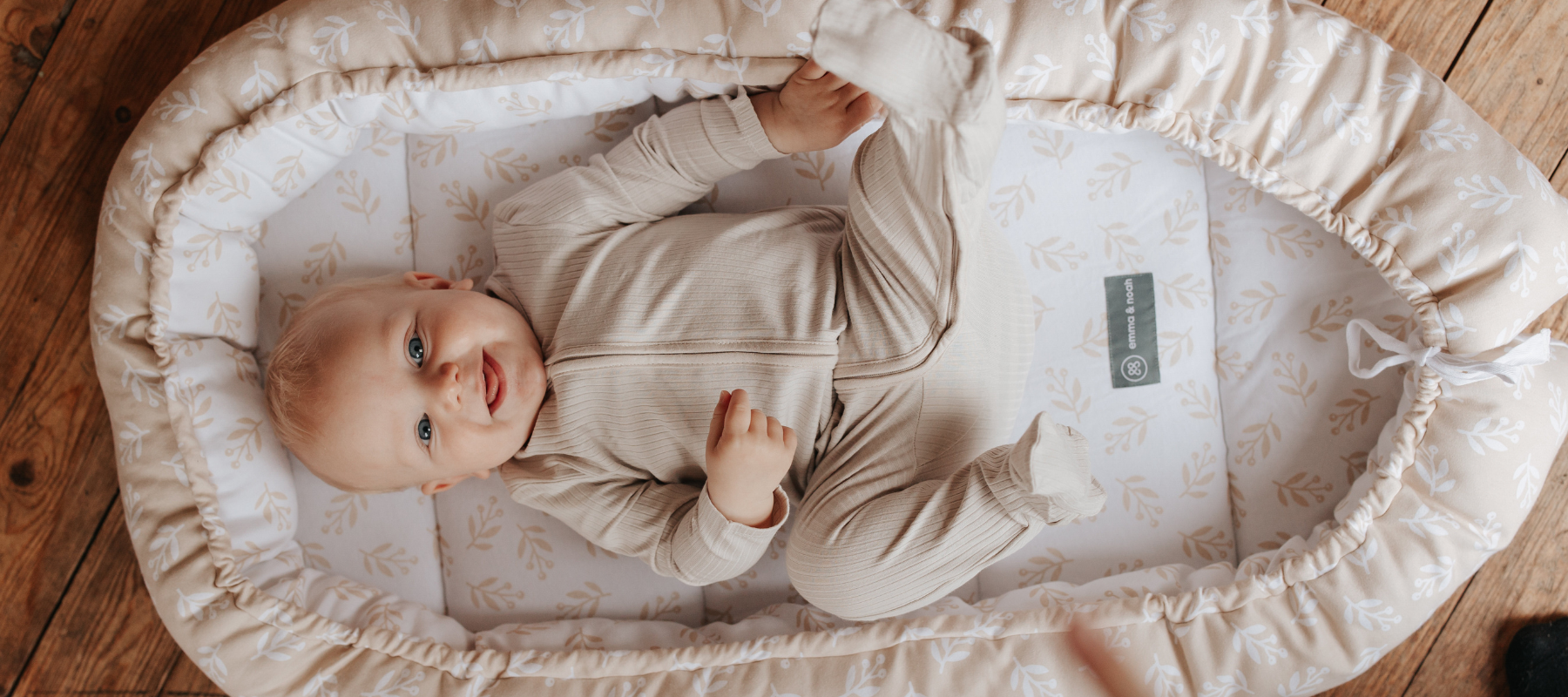 Besonders Neugeborene schlafen sehr viel. Nicht nur in der Nacht, sondern auch tagsüber. Damit Du Dein Baby in dieser Zeit nicht unbeaufsichtigt in seinem Bettchen schlafen oder liegen lassen musst, haben wir unser Babynestchen im Wende-Design entworfen. Damit kannst Du Deinen kleinen Schatz zu jeder Zeit in Deiner Nähe haben und musst Dir keine Sorgen machen. Für maximale Sicherheit empfehlen wir, das Babynestchen auf dem Boden zu nutzen. So kannst Du Deinen Schatz immer in Deiner Nähe haben: Egal, ob beim Duschen, Kochen oder beim Entspannen auf dem Sofa. Gleichzeitig hat Dein Baby seine gewohnte Schlafumgebung für den Tagschlaf und kann unbeschwert schlummern oder einfach nur liegen, während Du alltägliche Dinge erledigen kannst.